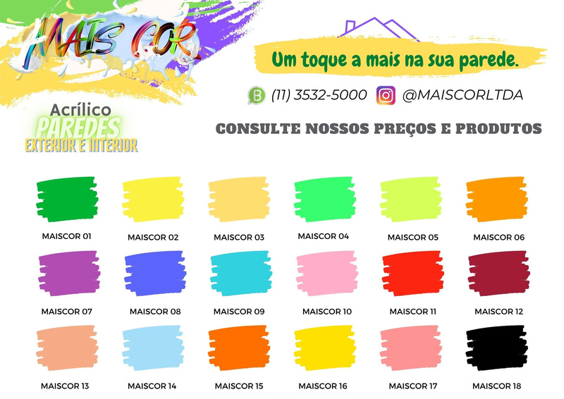 A Mais Cor há muito tempo no mercado, sente-se honrada e segura de sua atuação, visando sempre da um atendimento eficiente aos seus clientes.